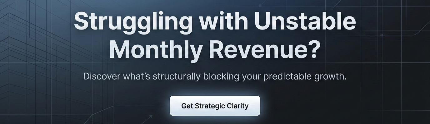 This uncertainty is dangerous — not because low months happen, but because unpredictable revenue removes strategic control, turning leadership into guesswork instead of execution.